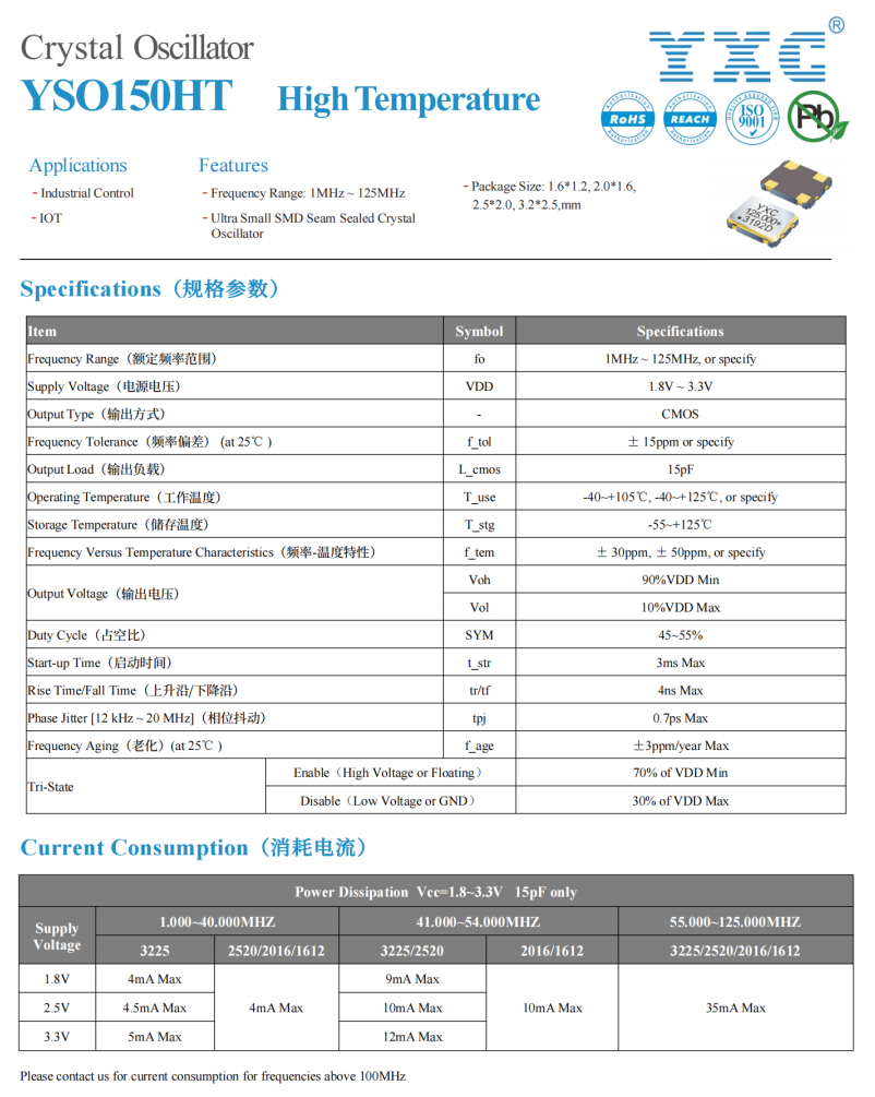¶¦µãÓéÀÖ¾§ÕñYSO150HTϵÁУ¬ÆµÂÊΪ25MHz£¬×ÜÆµ²î¡À50PPM£¬ÒÔÏÂΪYSO150HTϵÁйæ¸ñÊé¡£