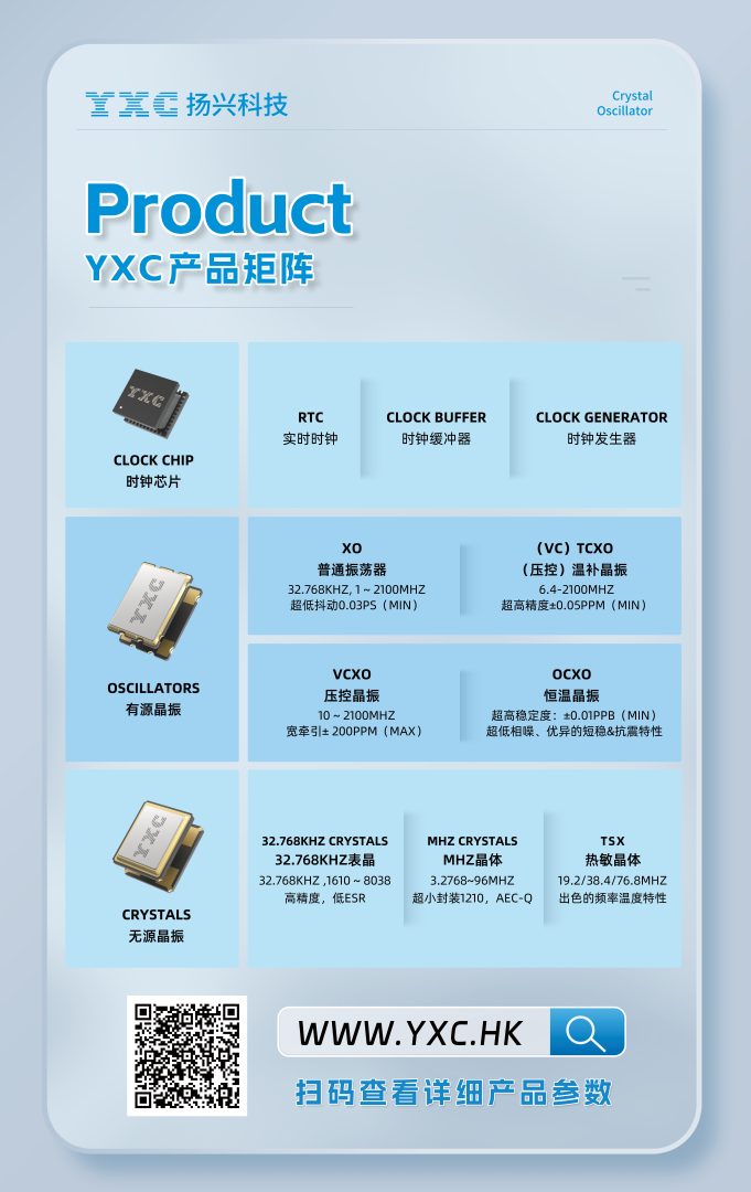 ÎÒÃÇÖÂÁ¦ÓÚÑз¢ºÍÉú²ú¾§Õñ¡¢¿É±à³ÌÕñµ´Æ÷¡¢TCXO/VCXO¡¢Èý¼¶ÖÓ¡¢ËøÏ໷оƬºÍʵʱʱÖÓоƬµÈ¸ßÐÔÄܺËÐÄÆ÷¼þ£¬ÎªÆû³µ¡¢Í¨ÐÅ¡¢¹¤Òµ¡¢Ò½Áƺ;ü¹¤µÈÁìÓòÌṩÎȶ¨¿É¿¿µÄ¡°ÐÄÌø¡±¡£