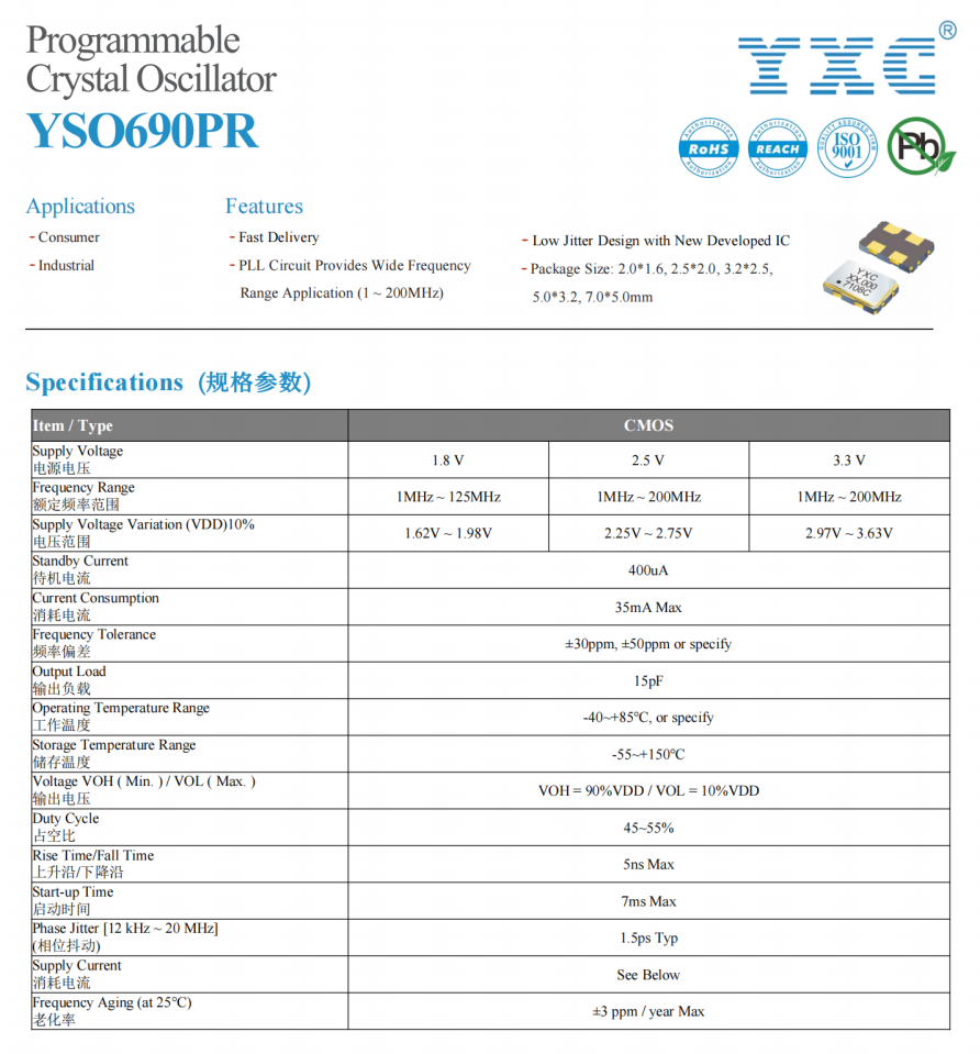 YSO690PR¹ã·ºÓ¦ÓÃÓڼ໤ÒÇÐÐÒµÒÔ¼°ÆäËûÁìÓò£¬Èç·ÓÉÆ÷¡¢½»»»»ú¡¢¶Ô½²»ú¡¢³äµç×®¡¢´òÓ¡»úµÈ¡£YSO690PR¹¤×÷ƵÂÊΪ2.048MHz£¬·âװΪ4P 3225£¬µçѹΪ3.3V£¬Êä³ö·½Ê½ÎªCMOS¡£