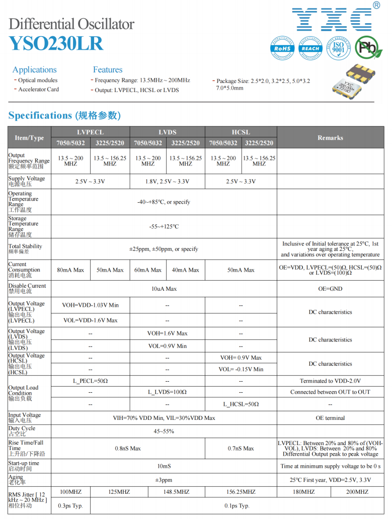 YSO230LR²î·Ö¶¨Æµ¾§ÕñµÄ²úÆ·ÌØµã£º